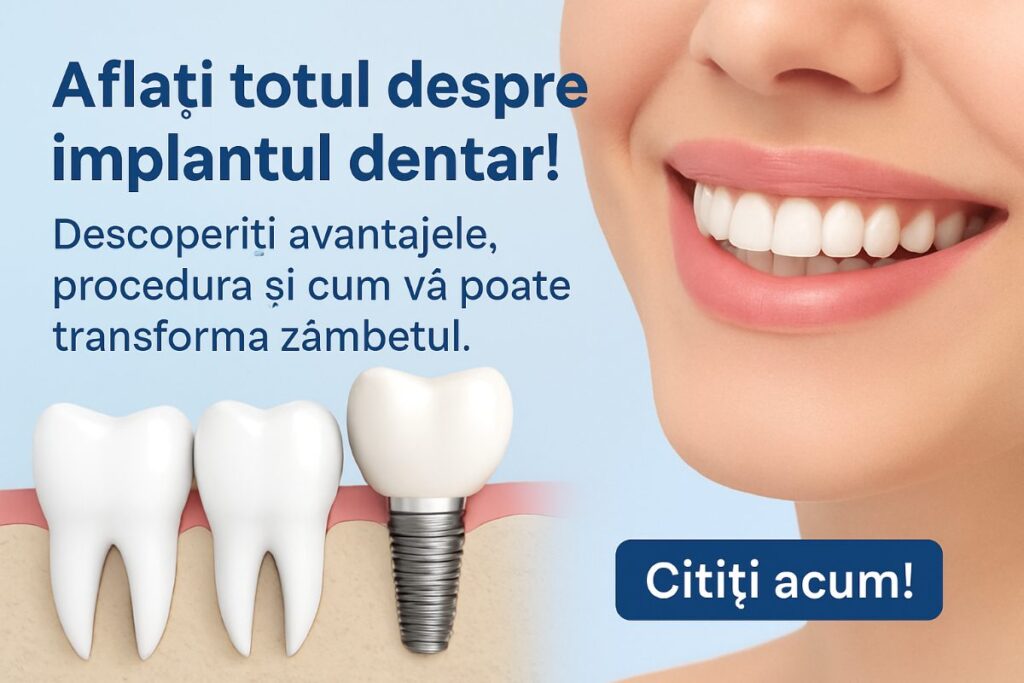 Implantul dentar este o soluţie modernă pentru dinţii lipsă care înlocuieşte rădăcina naturală cu o tijă metalică fixă. Mulţi pacienţi aleg implantul dentar pentru stabilitate, confort şi aspect natural. În acest articol vei afla ce este un implant, cine poate beneficia de el, paşii tratamentului, riscurile şi cum să alegi medicul potrivit.